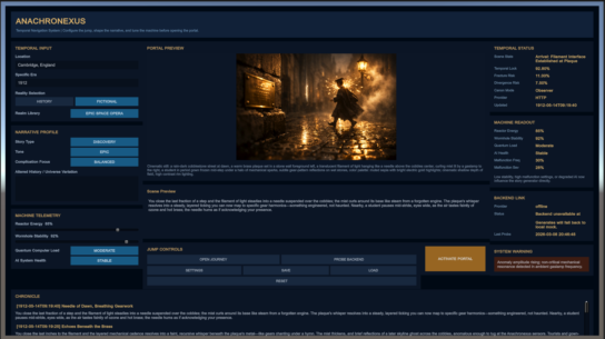 Simulation environments designed to explore physical systems, time navigation, and emergent behavior as investigative tools.